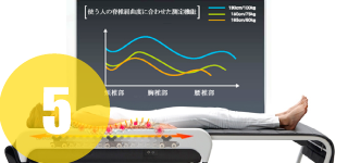 脊椎屈曲度測定機能は使い手の脊椎の長さおよび屈曲度を測定し、フィット型温熱指圧を提供します。人によって異なる脊椎指圧ポイントと脊椎の骨と骨の間を刺激し、より効果的に健康管理を助けます。